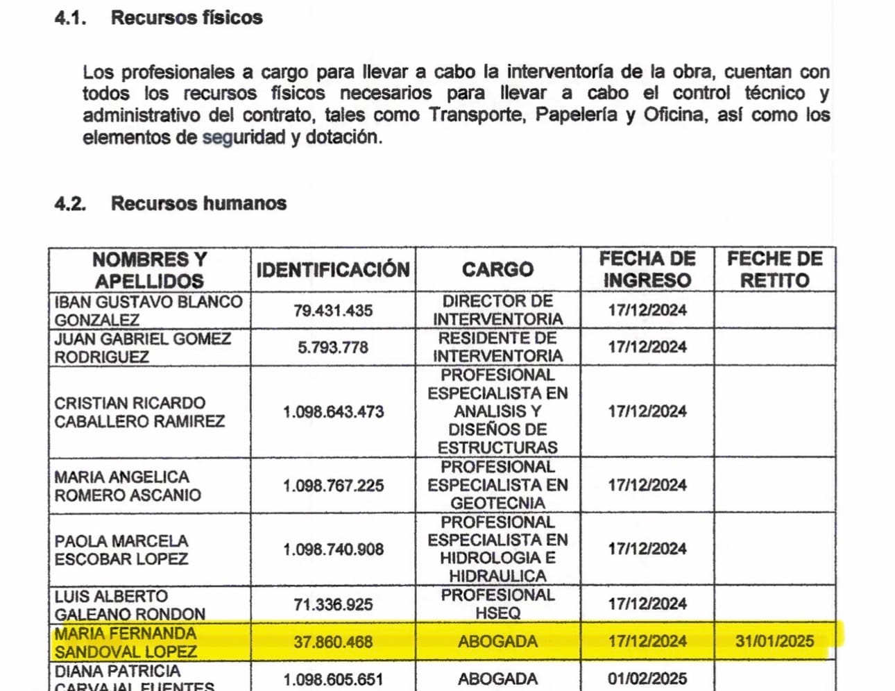 Y como dato final, quien le vendió la empresa Felgab a la abogada María Fernanda, fue Luis Fernando Quiñónez Flórez, quien se desempeña como ingeniero de la misma Secretaría de Infraestructura desde el año 2024 gracias a los contratos 255 de 2024, 1083 y 3339 de 2025, y 136 de 2026, con los cuales ha recibido más de 160 millones de pesos gracias a su trabajo junto a María del Rosario Torres Vargas, con quien venía trabajando desde hace más de ocho años en el municipio de Girón. El mismo profesional que firma los estudios para adicionarle más de 720 millones de pesos a JM Construcciones, de propiedad de Juan Gabriel Gómez, el mismo que junto con la abogada Sandoval López le habían comprado a él la empresa Felgab.