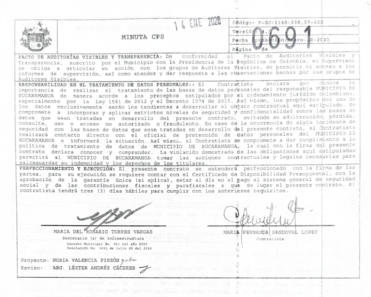 Y como si esto fuera poco, la representante legal de Felgab —la empresa contratada por la Universidad de Pamplona para ejecutar la interventoría— es María Fernanda Sandoval López, dueña del 95% de Felgab y contratista de la Secretaría de Infraestructura de Bucaramanga, donde se le han pagado más de 160 millones de pesos por honorarios profesionales a través de los contratos 2411 y 1228 del 2024, 491 y 3108 de 2025 y 691 de 2026 .