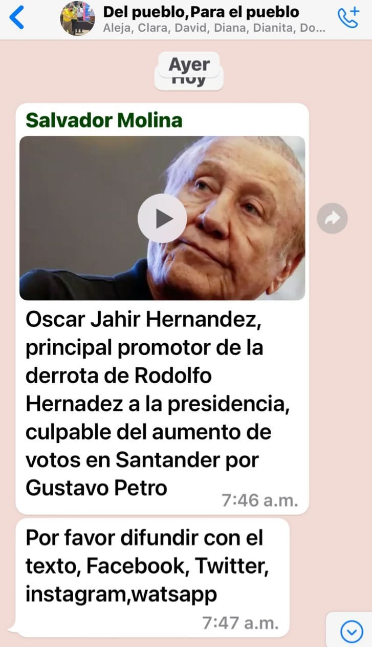Al concejal Salvador Molina le indignan estos escritos y en vez de denunciar las faltas urbanísticas de su propia familia, sale a alentar a su caterva de seguidores para que difundan videos mentirosos que atenten contra la honra de las personas