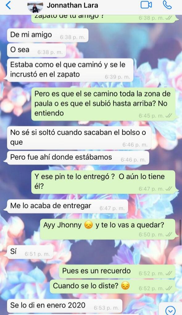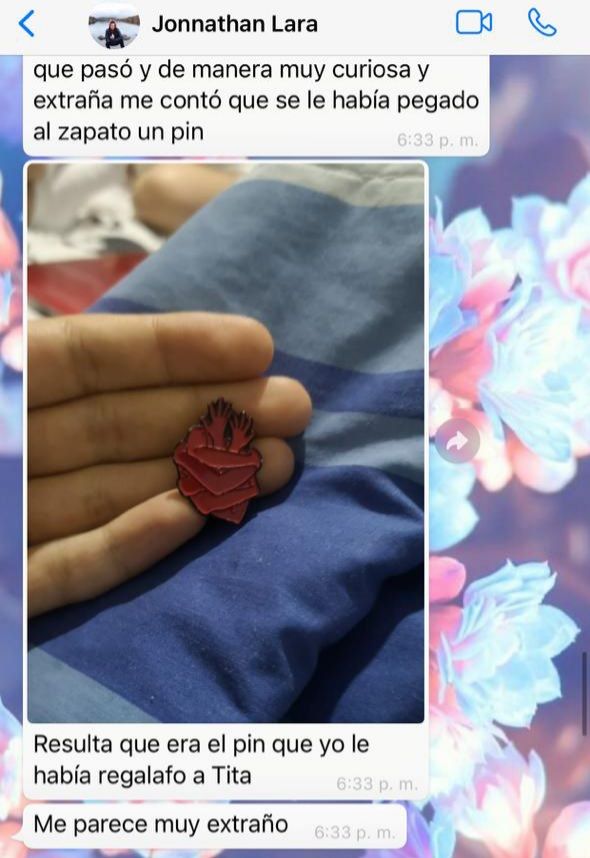 Dentro de estas circunstancias, la familia de Paula Andrea manifiesta que al ex novio de la fallecida, Jonathan Rueda Lara, le entregaron un pin que ella tenia desde enero de 2020, sin que exista la clara certeza de quien se lo entregó, así como tampoco la comprobación de que hubiese sido alguien que trabajara al interior de la obra de construcción.